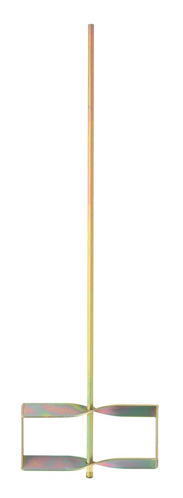 Quality tools for quality results. Welded steel mixer for use with 1/2" or larger low-rpm electric drill. 3/8" hexagonal shaft extends 1/2" below impeller to prevent bottoming out.