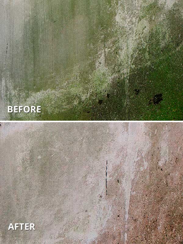 - Removes mold and algae from patios, driveways, sidewalks and other cement surfaces